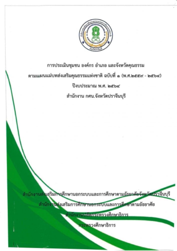 ่เอกสารการประเมินองค์กร อำเภอ และจังหวัดคุณธรรม ตามแผนแม่บทส่งเสริมคุณธรรมแห่งชาติฉบับที่ ปีงบประมาณ 2564 สำนักงาน กศน.จังหวัดปราจีนบุรี