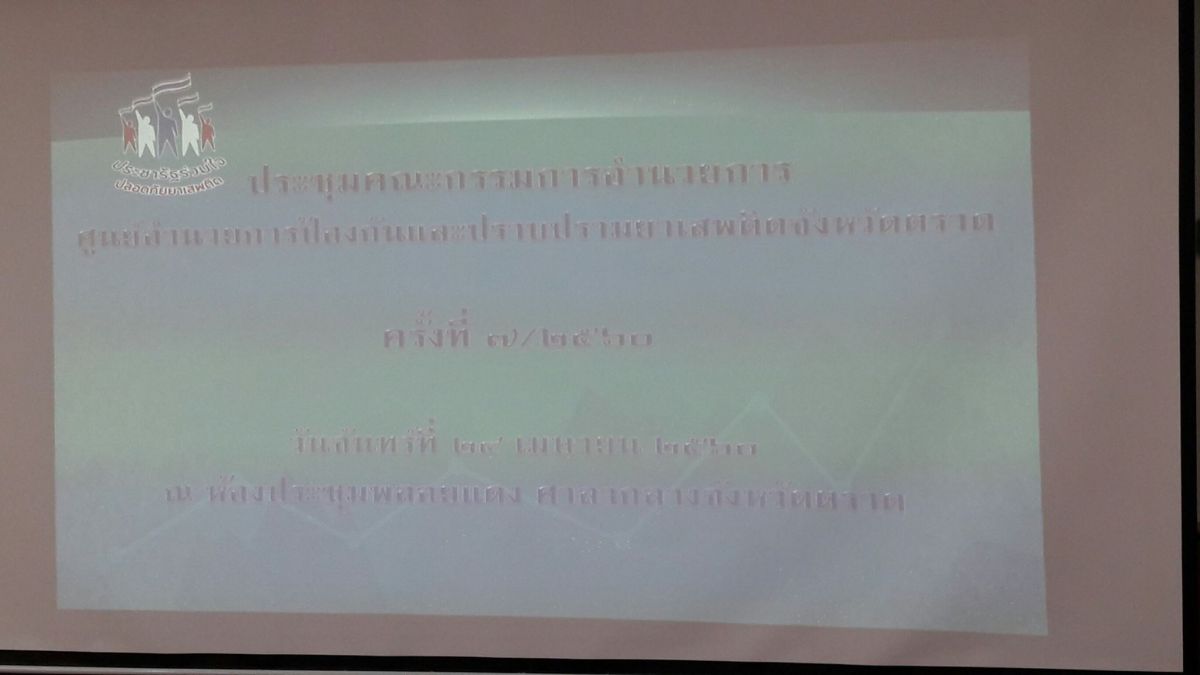 หมวดหมู่ : ประชาสัมพันธ์ หัวข้อเรื่อง : สำนักงาน กศน.จังหวัดตราด : นายจำรัส สุขประเสริฐ ผู้อำนวยการสำนักงาน กศน.จังหวัดตราด มอบหมายให้นางสาวอุไรรัตน์ ชนะบำรุง รองผู้อำนวยการ สำนักงาน กศน.จังหวัดตราด เข้าประชุมคณะกรรมการอำนวยการศูนย์อำนวยการป้องกันและปราบปรามยาเสพติดจังหวัดตราด วันที่ 24 เมษายน