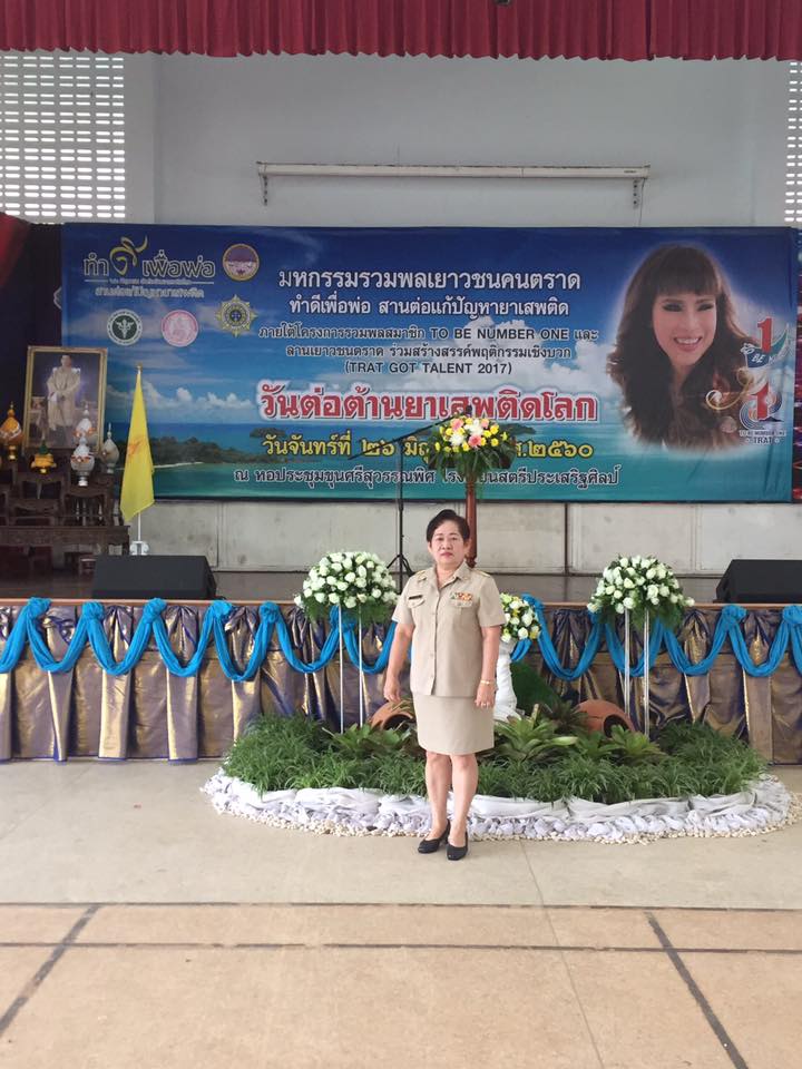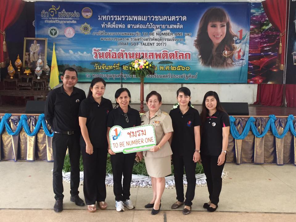 หมวดหมู่ : ประชาสัมพันธ์ หัวข้อเรื่อง : สำนักงาน กศน.จังหวัดตราด : นายจำรัส สุขประเสริฐ ผอ.สำนักงาน กศน.จังหวัดตราด ได้มอบหมายให้นางภาวิณี วรประดิษฐ ศึกษานิเทศก์ เข้าร่วมงานแสดงพลังต่อต้านยาเสพติด \"ทำดีเพื่อพ่อ สานต่อแก้ปัญหายาเสพติด\" และงานมหกรรมรวมพลสมาชิก TO BE NUMBER ONE วันจันท