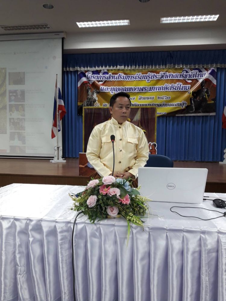 นายวรรณวิจักษณ์ กุศล รองผู้อำนวยการสำนักงาน กศน.จังหวัดตราด เป็นประธานเปิดพิธีโครงการประวัติศาสตร์ชาติไทยและบุญคุณพระมหากษัตริย์ไทย ระหว่างวันที่ 16-17 สิงหาคม 2561 ณ ห้องประชุมสำนักงานเทศบาลตำบลแสนตุ้ง อำเภอเขาสมิง จังหวัดตราด