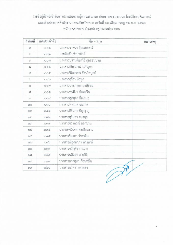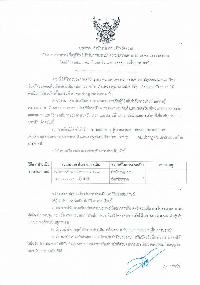 ประกาศ รายชื่อผู้มีสิทธิ์เข้ารับการประเมินความรู้ความสามารถ วิธีสอบสัมภาษณ์