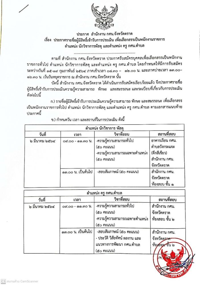 ประกาศรายชื่อผู้มีสิทธิเข้ารับประเมิน เพื่อเลือกสรรเป็นพนักงานราชการ ตำแหน่ง นักวิขาการพัสดุ และครู กศน.ตำบล