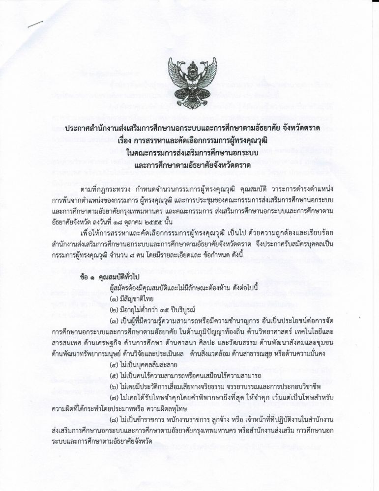 ประกาศสำนักงานส่งเสริมการเรียนรู้ประจำจังหวัดตราด เรื่อง แผนการส่งเสริมการเรียนรู้ของจังหวัดตราด (พ.ศ. ๒๕๖๘ - ๒๕๗๐)