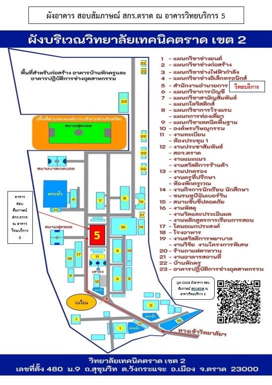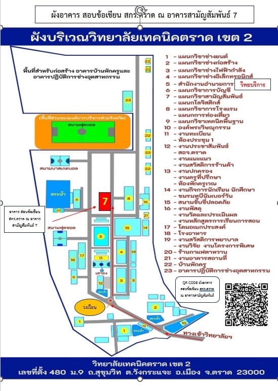 ผังอาคารสอบข้อเขียนและสอบสัมภาษณ์ ณ วิทยาลัยเทคนิคตราด เขต 2