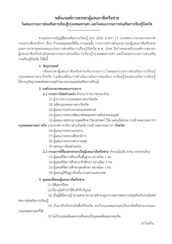 เรื่อง การสรรหาผู้แทนภาคีเครือข่ายในคณะกรรมการส่งเสริมการเรียนรู้ จังหวัดตราด