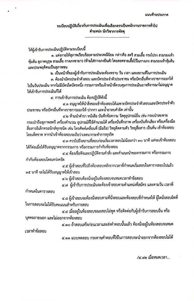 รายชื่อผู้มีสิทธิ์เข้ารับการประเมิน เพื่อเลือกสรรเป็นพนักงานราชการทั่วไป ตำแหน่ง นักวิชาการพัสดุ