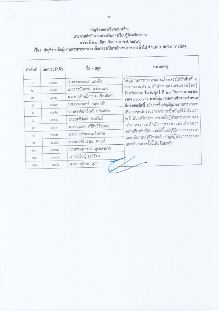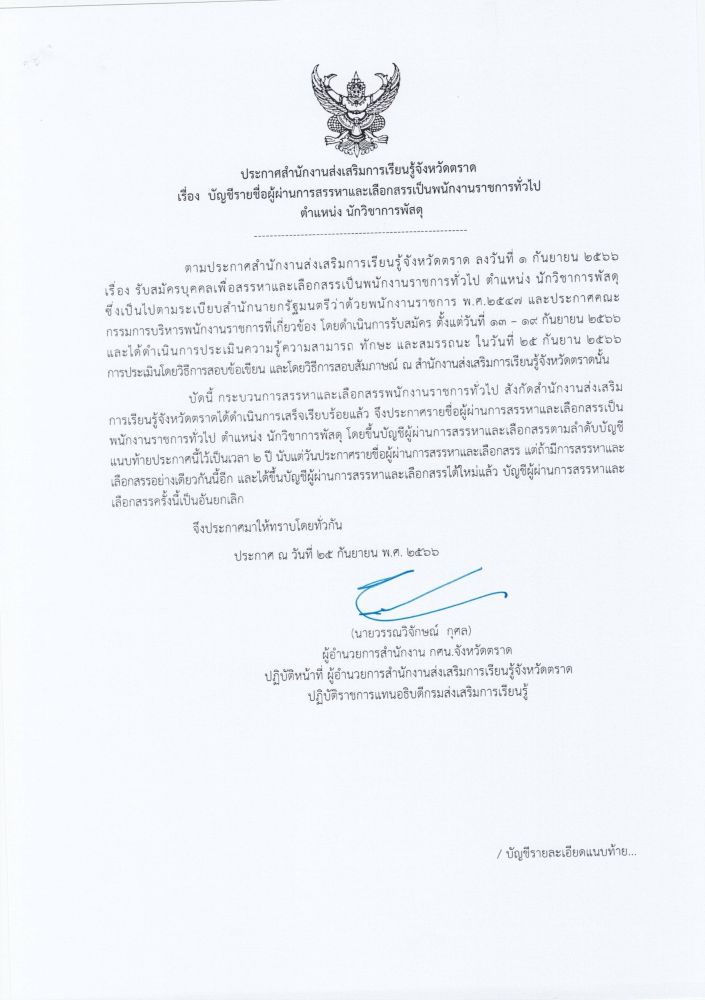 บัญชีรายชื่อผู้ผ่านการสรรหาและ เลือกสรรเป็นพนักงานราชการทั่วไป ตำแหน่งนักวิชาการพัสดุ