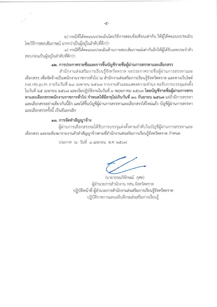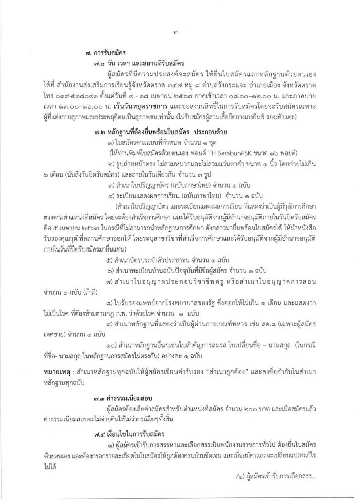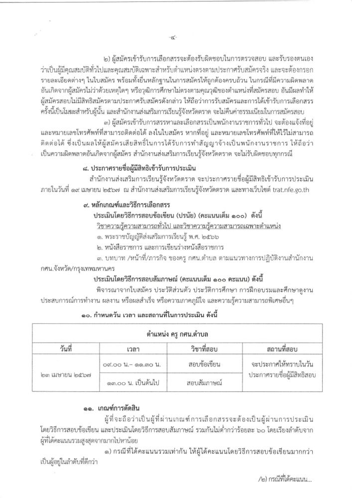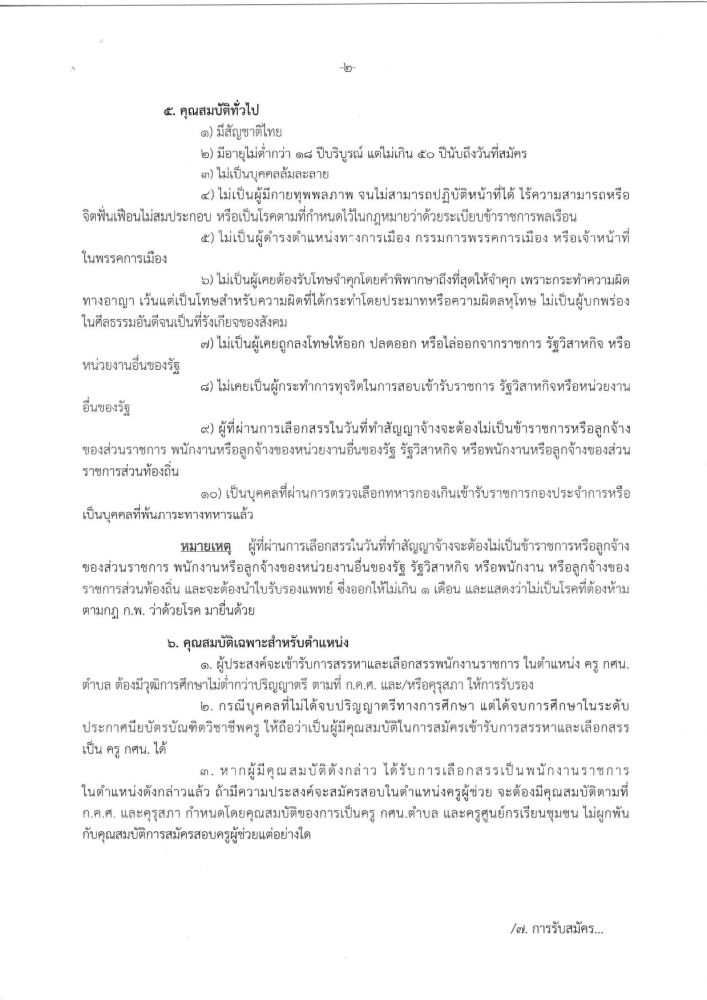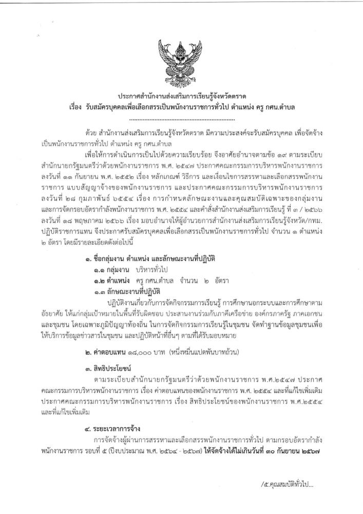 รับสมัครบุคคลเพื่อเลือกสรรเป็นพนักงานราชการ ทั่วไป ตำแหน่ง ครู กศน.ตำบล