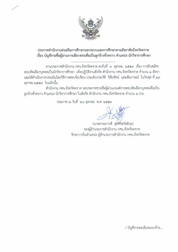 ประกาศรายชื่อผู้ผ่านการเลือกสรรตำแหน่งนักวิชาการศึกษา