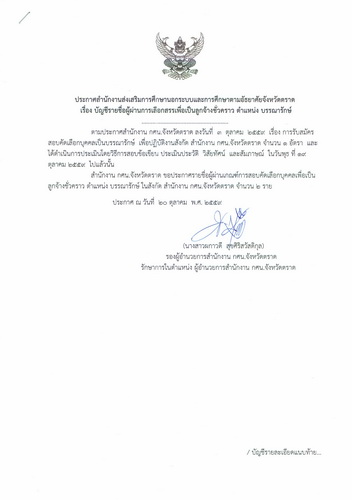 ประกาศสำนักงานส่งเสริมการเรียนรู้ประจำจังหวัดตราด เรื่อง แผนการส่งเสริมการเรียนรู้ของจังหวัดตราด (พ.ศ. ๒๕๖๘ - ๒๕๗๐)