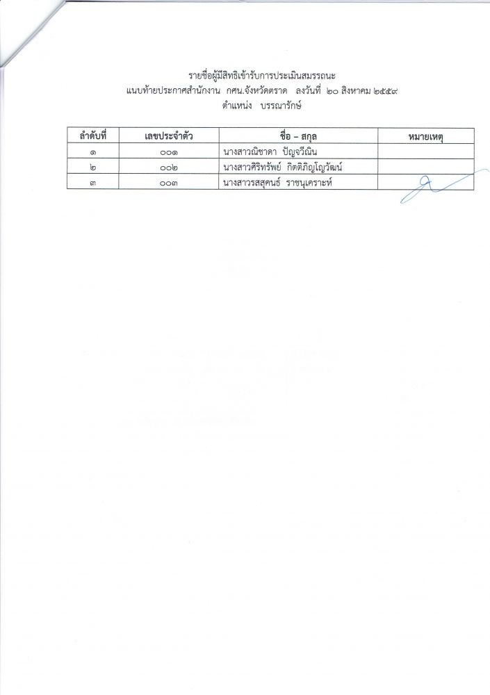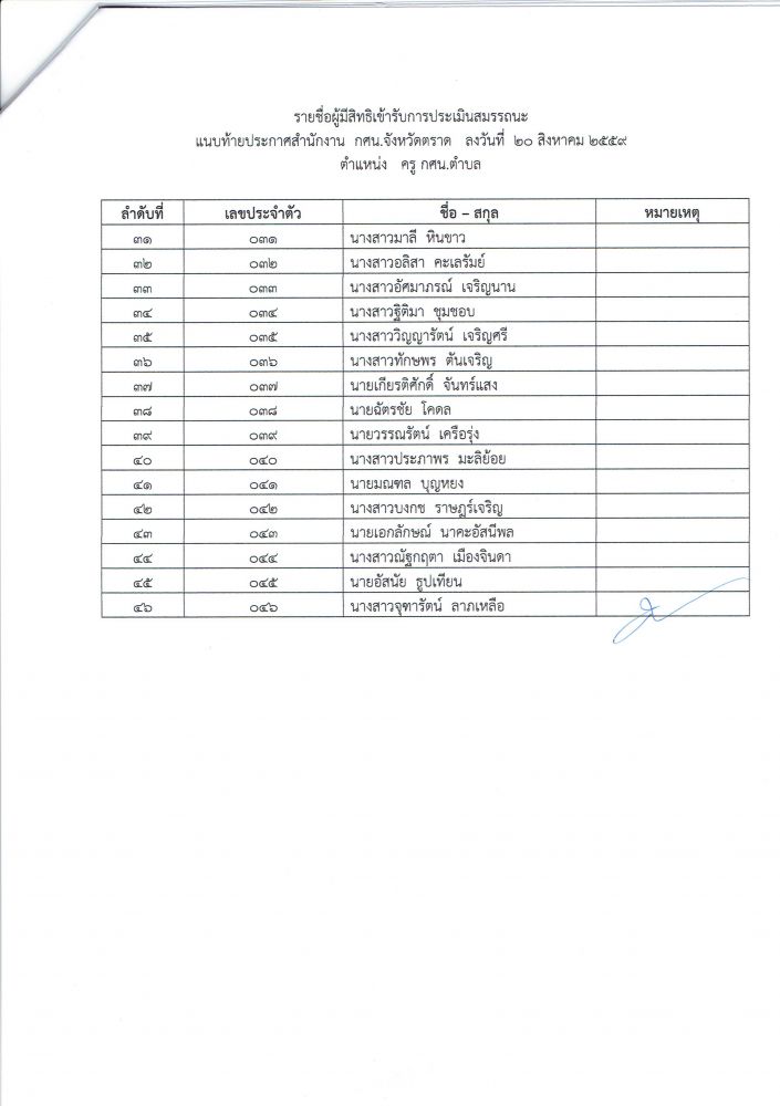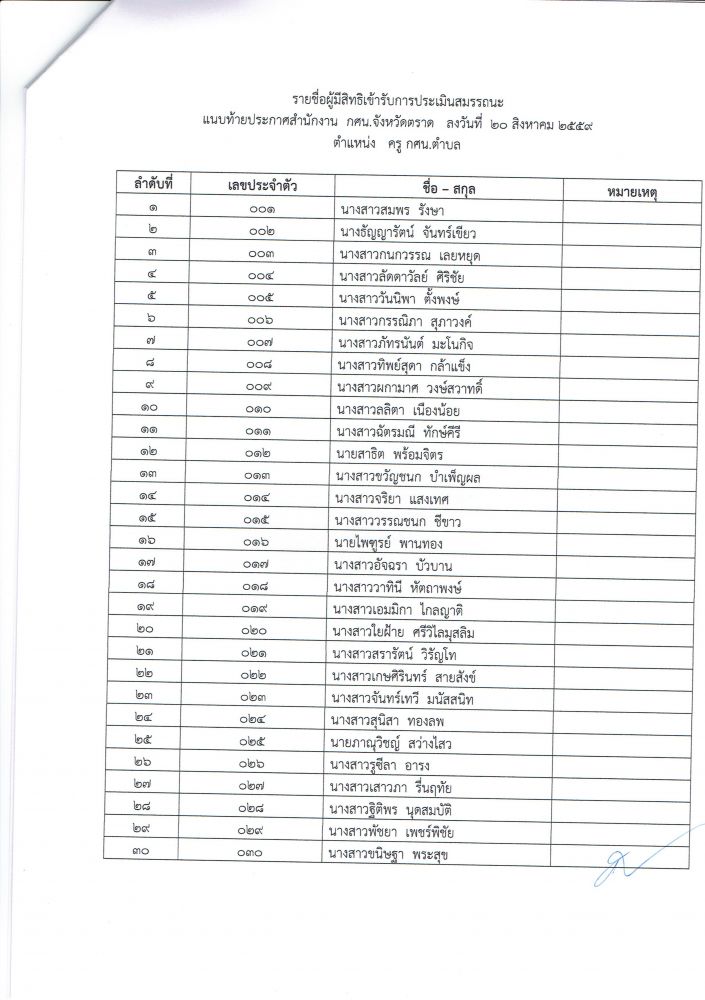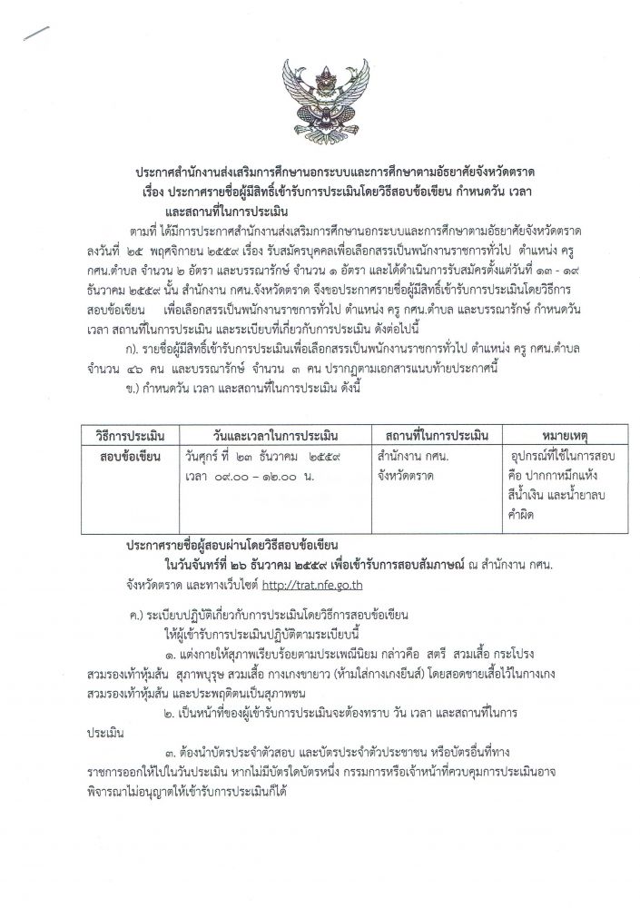 ประกาศรายชื่อผู้มีสิทธิ์สอบ