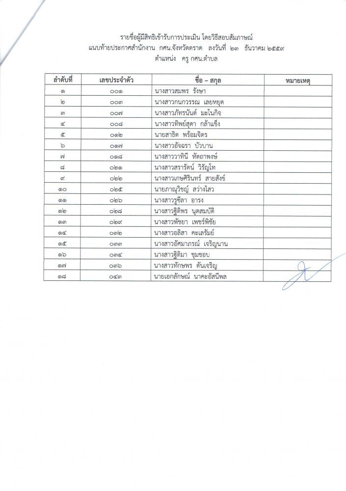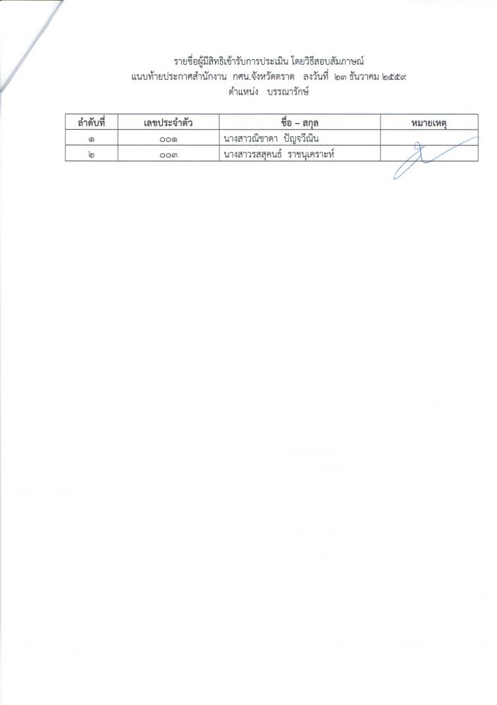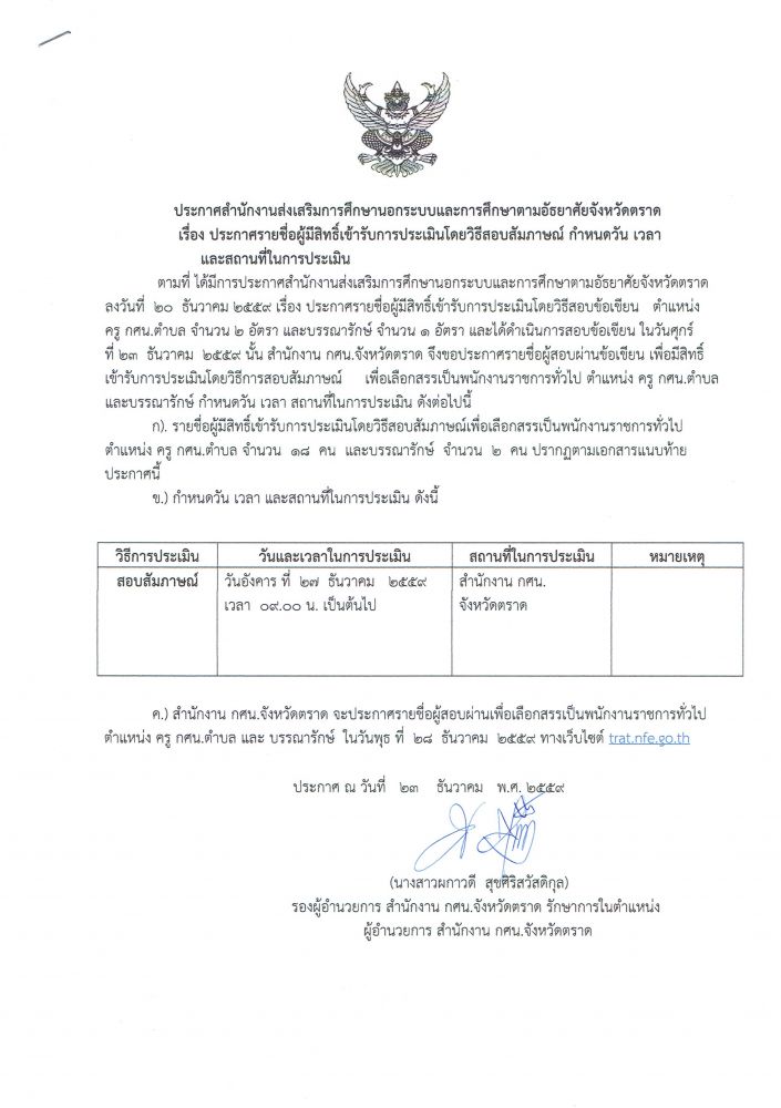 ประกาศรายชื่อผู้ผ่านการประมินโดยวิธีสอบข้อเขียน