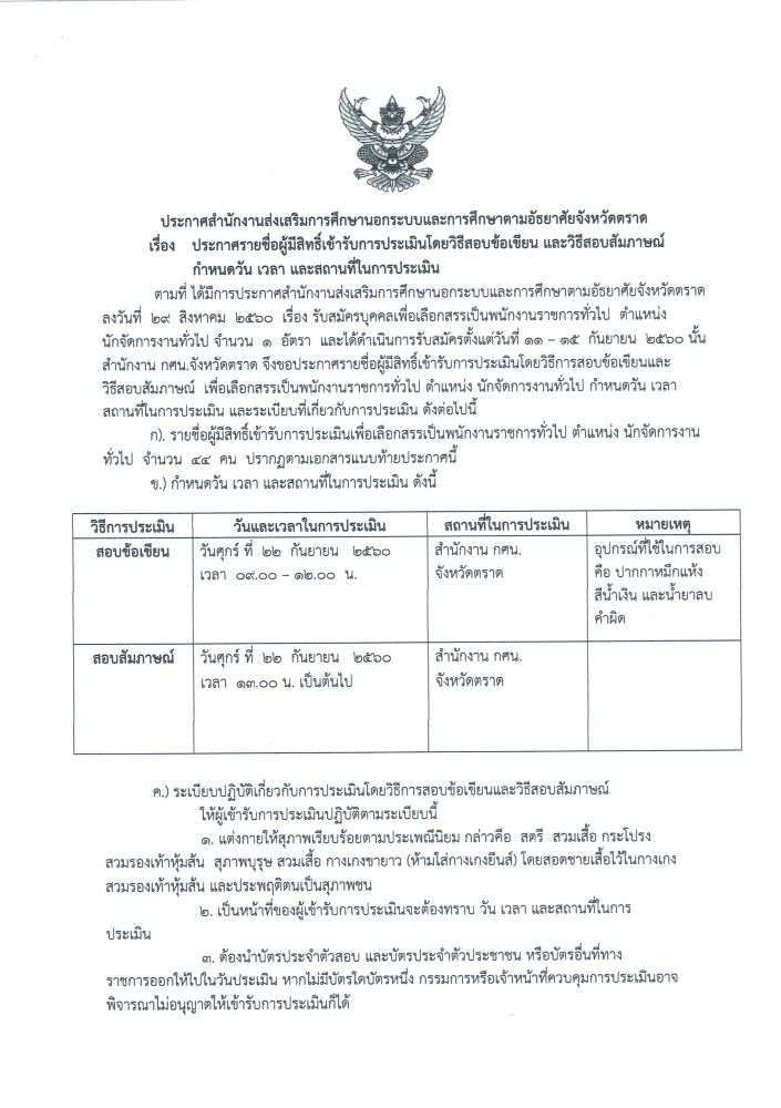 ประกาศสำนักงานส่งเสริมการเรียนรู้ประจำจังหวัดตราด เรื่อง แผนการส่งเสริมการเรียนรู้ของจังหวัดตราด (พ.ศ. ๒๕๖๘ - ๒๕๗๐)