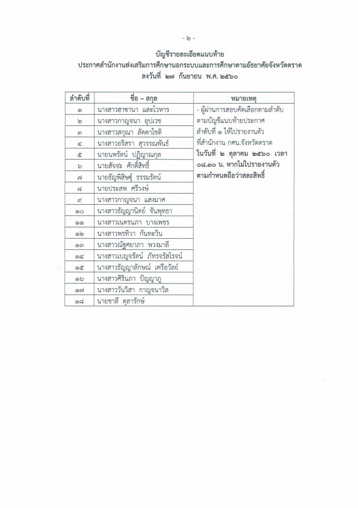 ประกาศสำนักงานส่งเสริมการเรียนรู้ประจำจังหวัดตราด เรื่อง แผนการส่งเสริมการเรียนรู้ของจังหวัดตราด (พ.ศ. ๒๕๖๘ - ๒๕๗๐)