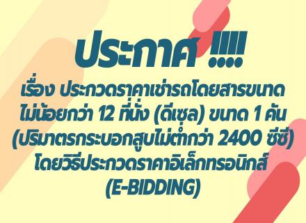 เรื่อง ประกวดราคาเช่ารถโดยสารขนาดไม่น้อยกว่า 12 ที่นั่ง (ดีเซล) ขนาด 1 คัน (ปริมาตรกระบอกสูบไม่ต่ำกว่า 2400 ซีซี) โดยวิธีประกวดราคาอิเล็กทรอนิกส์ (e-bidding) ด้วยวิธีประกวดราคาอิเล็กทรอนิกส์ (e-bidding)
