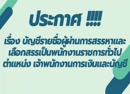 เรื่อง บัญชีรายชื่อผู้ผ่านการสรรหาและเลือกสรรเป็นพนักงานราชการทั่วไป ตำแหน่ง เจ้าพนักงานการเงินและบัญชี