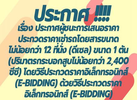 เรื่อง ประกาศผู้ชนะการเสนอราคา ประกวดราคาเช่ารถโดยสารขนาดไม่น้อยกว่า 12 ที่นั่ง (ดีเซล) ขนาด 1 ตัน (ปริมาตรกระบอกสูบไม่น้อยกว่า 2,400 ซีซี) โดยวิธีประกวดราคาอิเล็กทรอนิกส์ (e-bidding) ด้วยวิธีประกวดราคาอิเล็กทรอนิกส์ (e-bidding)