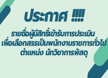 ประกาศรายชื่อผู้มีสิทธิ์เข้ารับการประเมิน เพื่อเลือกสรรเป็นพนักงานราชการทั่วไป