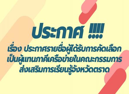 เรื่อง ประกาศรายชื่อผู้ได้รับการคัดเลือกเป็นผู้แทนภาคีเครือข่ายในคณะกรรมการส่งเสริมการเรียนรู้จังหวัดตราด