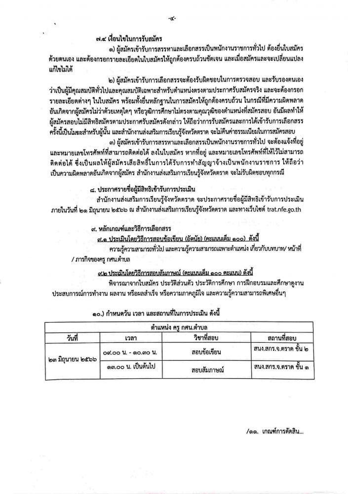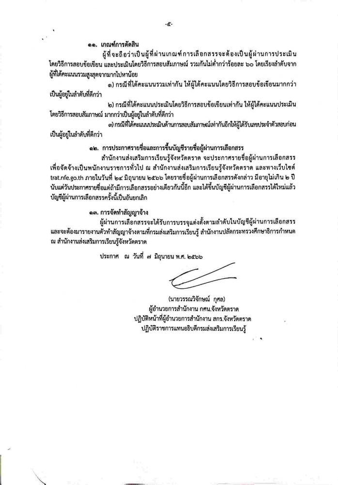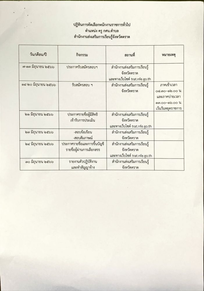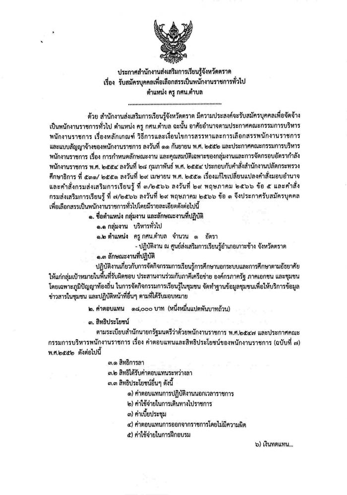 เรื่อง รับสมัครบุคคลเพื่อเลือกสรรเป็นพนักงานราชการทั่วไป ตำแหน่ง ครู กศน.ตำบล